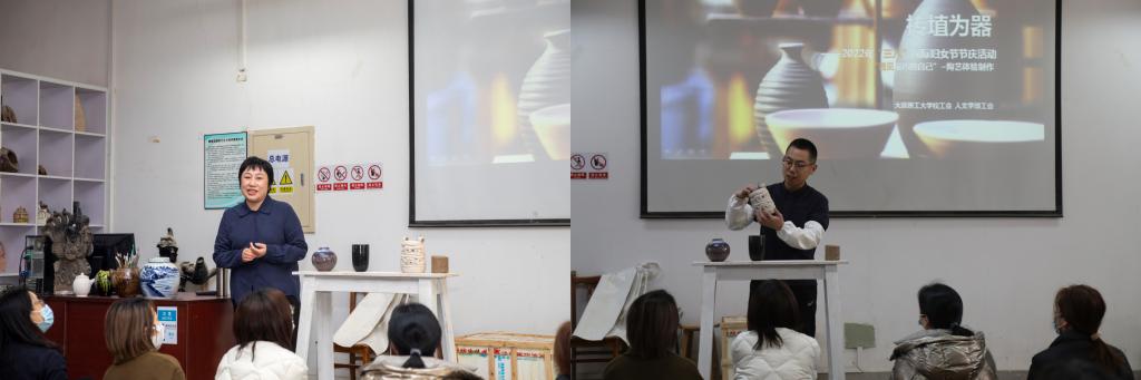 校工会主席屈丽红首先代表校工会对参加活动的女教工表示欢迎并送上节日的问候。她说人文学部工会一直以来充分发挥了联系教职工的桥梁和纽带作用,注重教职工精神家园的建设,丰富文化内涵。陶艺体验活动一直是人文学部工会的特色品牌活动,深受广大教职工的欢迎和喜爱,丰富了教职工的业余生活,希望大家在活动中一同体验陶艺的魅力,感悟工匠精神,锻炼耐心、发挥创意、陶冶情操、增进交流。