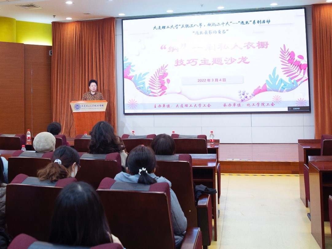 3月4日下午,由校工会主办,化工学院工会承办的“纳”一间私人衣橱-实用性收纳整理技巧主题沙龙活动在知化楼D102举办,此次活动邀请到高级空间收纳师白小米老师讲授收纳方法和整理经验。校工会主席屈丽红,校工会副主席李丽,化工学院党委副书记兼副院长、工会主席刘阅出席了本次活动,共有来自全校各单位的60余名女教职工参与了本次活动。