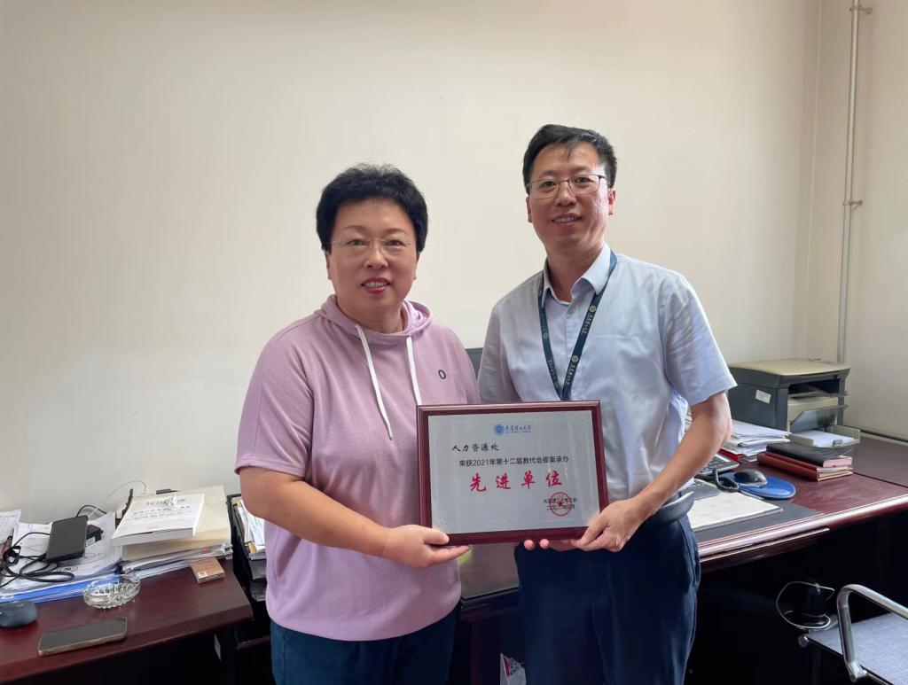 8月19日上午,校工会主席屈丽红走访保卫处、教务处、人力资源处,为上述单位颁发“2021年度第十二届教代会提案承办先进单位”奖牌。