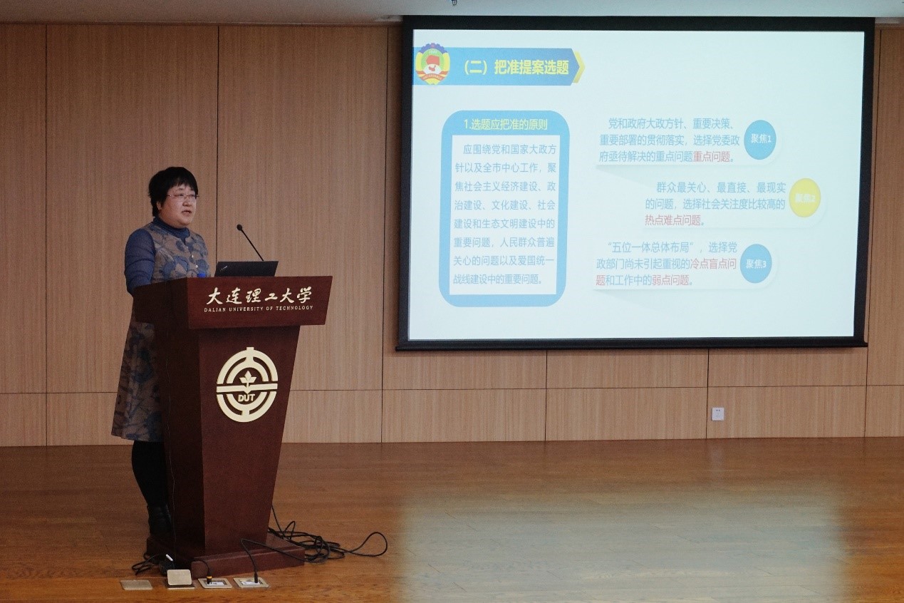 为进一步推进我校民主政治建设,充分发挥工会思想政治引领作用,增强教代会代表履职能力,提升提案撰写质量和水平。2月24日,校工会邀请大连市政协提案工作处王丽华处长来校进行提案工作专题培训。学校第十二届教代会提案工作委员会委员、第十二届教代会代表和各基层工会主要负责人共90余人参加培训。培训由校工会副主席曹旭主持。