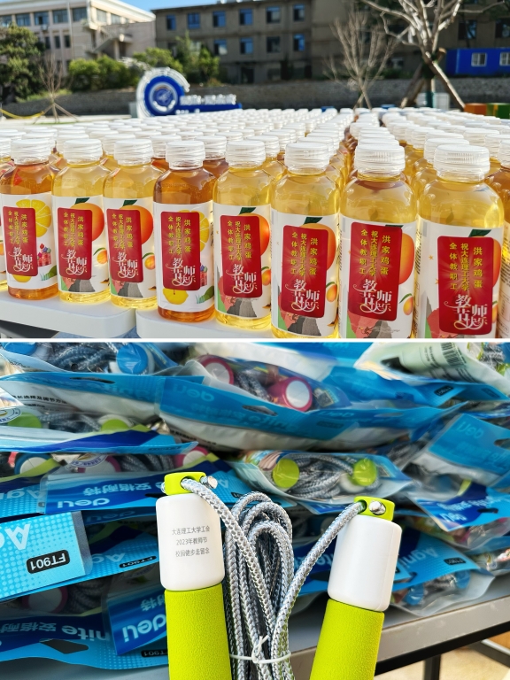 校工会在终点站为大家准备了完线纪念品健身跳绳,同时,洪家畜牧有限公司为老师们提供了茶饮。愿老师们常保健康身体,积极锻炼,劳逸结合,老师们则纷纷表示,自己度过了一个难忘的、有意义的教师节。
