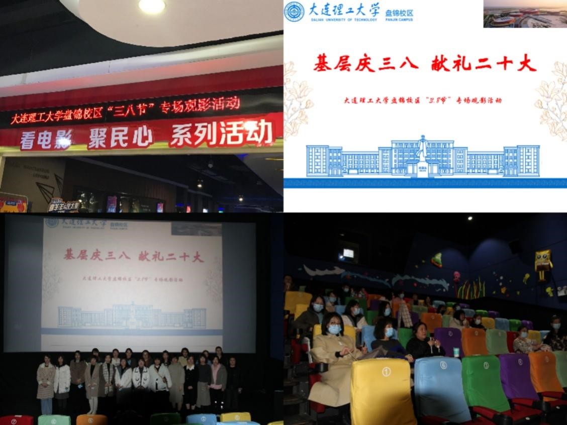 春和景明,杏雨梨云。在第112个“三八”国际劳动妇女节到来之际,为深入学习宣传习近平新时代中国特色社会主义思想,响应校工会“巾帼心向党,献礼二十大”主题号召,推动校区女教职工继续戮力同心“听党话、跟党走”,盘锦校区党工委工会积极牵头组织,校区各学院、分院工会高度重视,在校区各基层工会共同协作配合下,于3月8日开展“基层庆三八,献礼二十大”暨大连理工大学盘锦校区庆祝三八节专场观影活动。