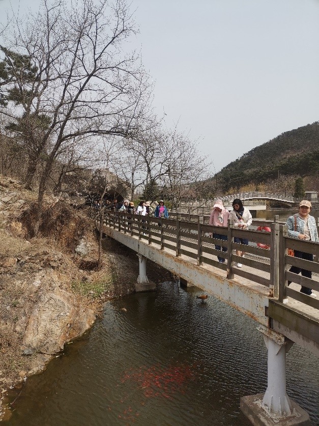 春游当日,阳光明媚,春风徐徐。中午时分,参加活动的二十余位老师在物理学院楼前集合,领取了学院工会为各位老师精心准备的春游餐食饮品后,高高兴兴地乘上春游大巴向目的地白云雁水健身公园出发。到达白云雁水健身公园后,大家三五结对,沿着公园内的徒步栈道向前进发。