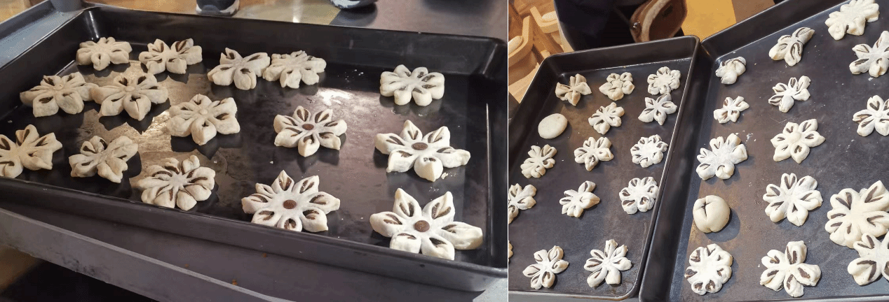 烘焙活动伊始,专业面点师向大家详细讲解了烘焙食材搭配、演示了制作步骤。随后在老师的示范和指导下,大家各显身手,秒变“烘焙达人”。活动现场弥漫着浓郁的西点香味,洋溢着阵阵欢声笑语。制作过程中,老师们对面点的掌控还不是很熟练,但是通过互相的帮忙合作,以及面点老师耐心的讲解,最后现场的每一位老师都成功的做出了属于自己的点心。大家一边品尝自己的烘焙作品,一边交流分享如何平衡工作与生活的诀窍,体验着温馨快乐的烘焙乐趣和美好时光。