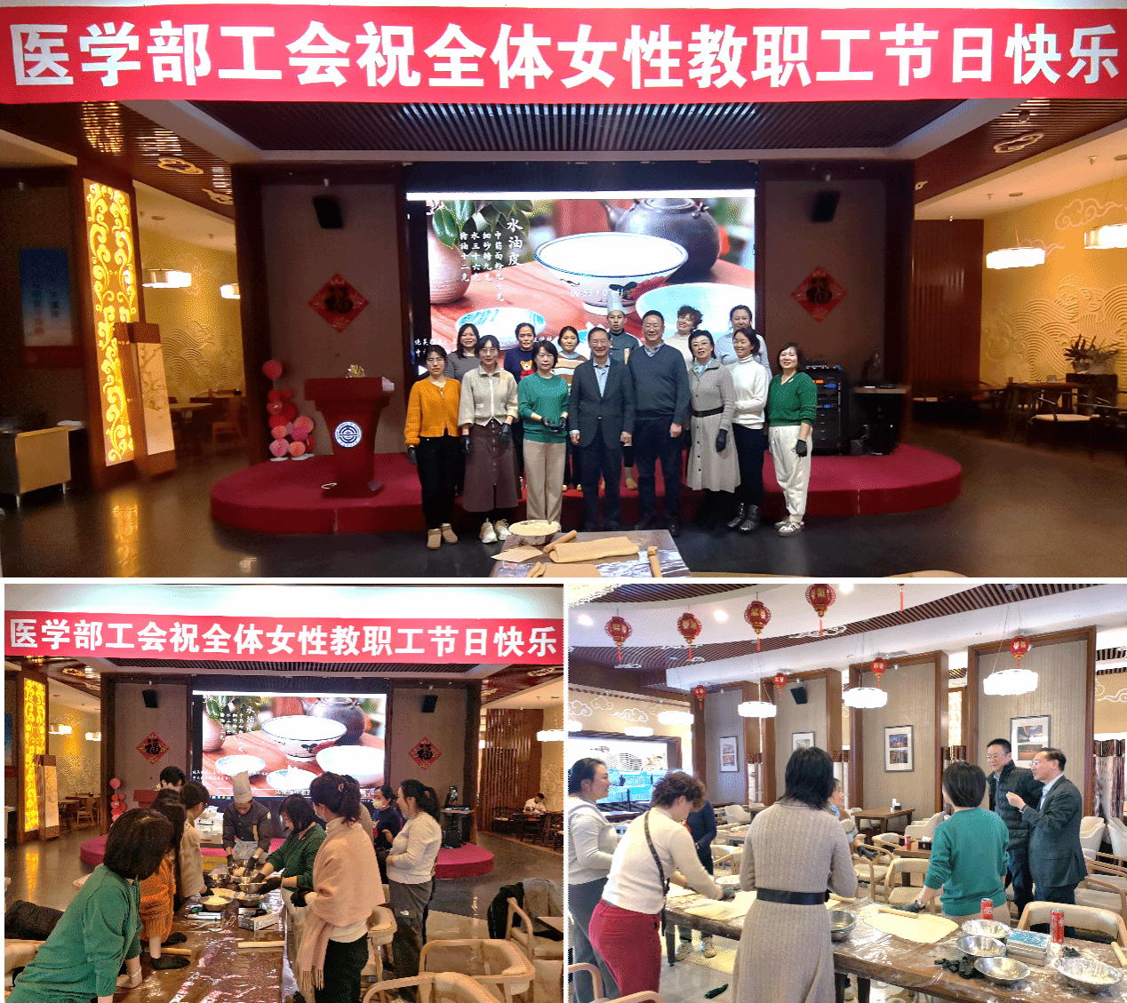 3月8日,为庆祝第114个“三八”国际劳动妇女节,丰富学部女教职工文化生活,调动女教职工工作和生活的积极性、创造性,医学部工会组织女教职工在博园食堂三楼开展了“品味生活,焙感幸福”西式点心烘焙制作主题活动。学部近20名女教职工代表参加活动,现场学习制作“京八件”酥皮糕点。医学部部长曲鹏、党委书记兼常务副部长覃开蓉亲临现场为各位女性教职工送上节日祝福,并与大家合影留念。