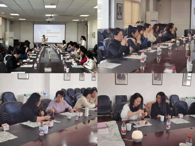 本次活动特邀植物精油疗法全国培训负责人姜婷老师担任主讲嘉宾。姜老师从精油的植物来源、萃取工艺讲起,深入浅出地介绍了不同精油的功效特性与情绪调节作用。在嗅吸体验环节,老师们轻阖双眼,感受柑橘的清新、薄荷的提神……在香气氤氲中,身心得到了深度的放松。
