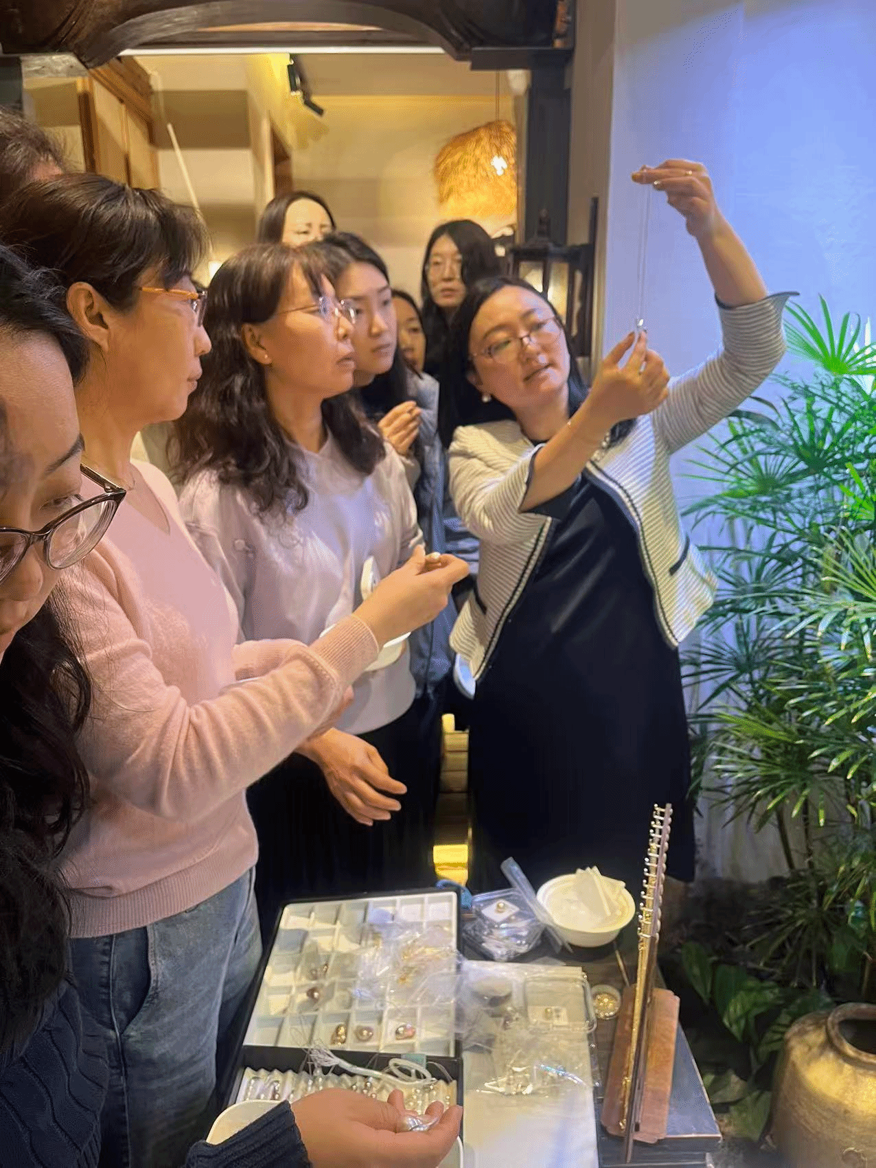 活动伊始,一场别开生面的珍珠文化分享拉开了序幕。专业讲师从珍珠的形成过程讲起,深入浅出地解读其文化寓意与中华美学中的象征意义。老师们在聆听中感受到“历经沉淀,方显光华”的深刻内涵,也在珍珠的温润质感中,引发对自我成长与内在价值的思考。
