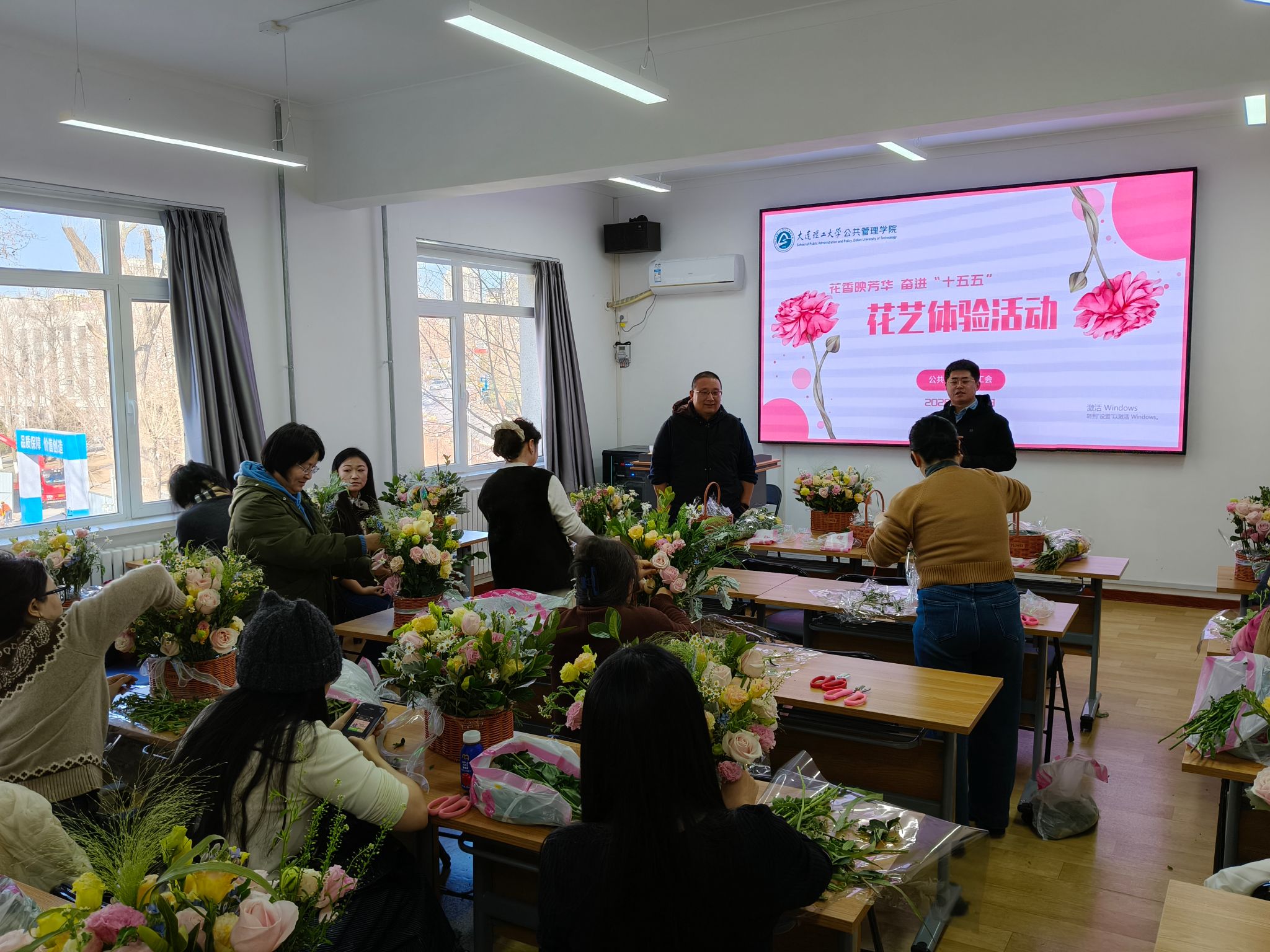 为热烈庆祝“三八”国际劳动妇女节,3月6日,公共管理学院在厚德楼302会议室开展“花香映芳华 奋进‘十五五’”主题花艺体验活动。学院女教职工及男教职工家属欢聚一堂,在花香雅韵中共度美好时光。