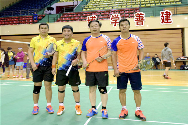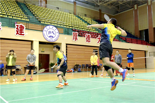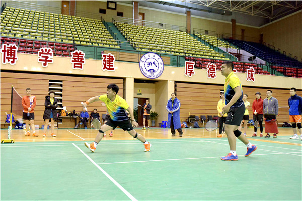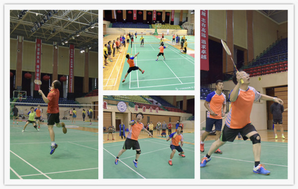 4日上午8点30分进行了简短的开幕式,双方互赠协会会旗,两校羽协会长发表祝辞,随后友谊赛正式开始。首场比赛是由双方会长携搭档的男双对决,大工罗钟铉、李岩泽对阵沈建大李宏男、赵振文,这场比赛采取的是一盘31分的赛制。比赛开始,大工男双进入状态较慢,客场作战稍微有些紧张,尤其李岩泽出现了少有的频繁失误。沈建大男双先声夺人,一直处于领跑的位置,26:22领先。大工男双不愧为大工第一男双,在接近终局时大比分落后,但没有慌乱,稳扎稳打,减少失误,最终以31:27获胜。纵观这场比赛,双方实力比较接近,尤其两校的会长进步很明显,罗会长网前的推扑、接杀很有心得,李会长应该算是我们大工培养的羽球新秀,从不会打、到会打再到今天能和高手对决,这和大工教工羽毛球广泛开展的蓬勃发展氛围关系密切。接下来的比赛在多片场地同时展开,有男双、女双、混双、和男单。尽管是友谊赛,但只要是比赛,就不会缺少“杀气”和“血腥”,每场比赛都很紧张激烈。纵观两校教工羽毛球队的整体水平,沈建大略胜一筹。结合比赛感觉到,今后大工教工羽毛球活动的重点是要加大对年轻人的培养力度,尤其要注重对年轻女会员的培养。多年来,大工教工羽协的高水平女会员年龄偏大,这对学校教工羽毛球运动整体水平的发展是不利的。