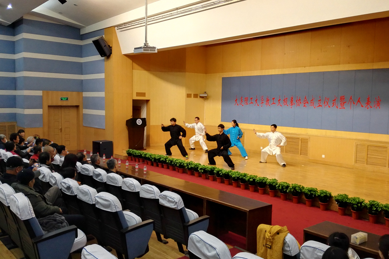 现在,学校有很多老师在习练陈氏、杨氏、吴氏等各种太极拳。多种太极拳在校园内交相辉映,弘扬了中华传统文化,彰显了大连理工大学丰富的校园文化建设内涵。成立学校教工太极拳协会,是为了发展学校太极拳运动,提高教职工的健康水平和身体素质。协会是在校工会领导下的、在职教工自愿参加基础上的群众性体育活动组织。宗旨是在教职工中推广太极拳运动,组织会员参与各种太极拳学习交流活动。校工会倡议各部门工会成立太极拳协会等群体活动组织,并希望学校每位教职工都能长期坚持并享受至少一项文体活动,使得教职工更健康,更快乐,使得校园更团结,更富于活力。
