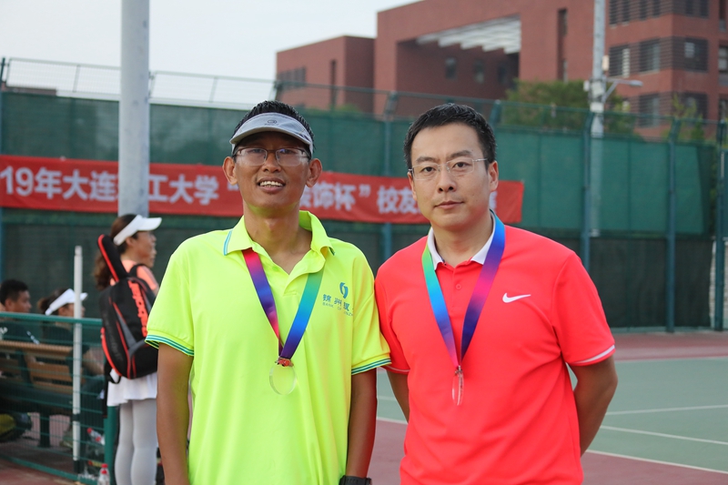 本届校友网球大赛的赞助商—大连升阳装饰工程有限公司的总经理王洪大先生,是1987年毕业于大连理工大学机械学院的校友。开幕式上他深情致辞,他说作为大连理工大学的毕业生,能有这样的机会为魂牵梦绕的母校、为喜欢的网球做点事情倍感骄傲和自豪。大连理工大学曾经的学子,时刻关注母校的发展变化,有幸回校参加网球比赛,结识更多的校友和球友很高兴。校工会主席冯振业教授代表学校欢迎校友回家,感谢王总对本次赛事的亲情赞助,他希望通过这样的交流进一步加深校友和母校的联系,期待校友和球友们对大工网球的发展做出更大的贡献!
