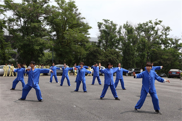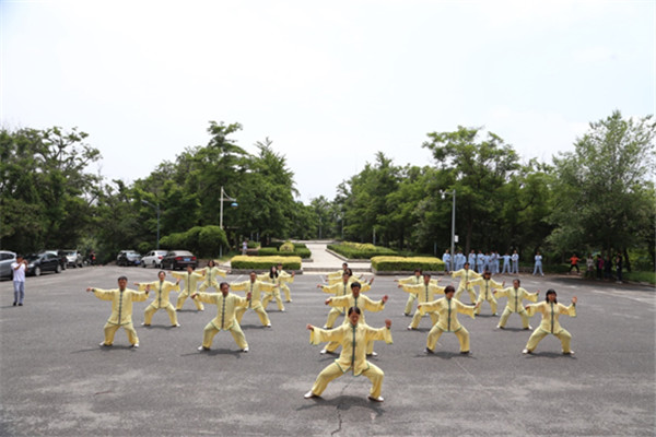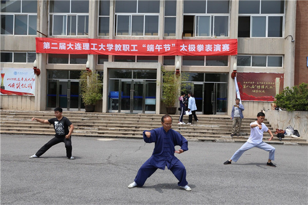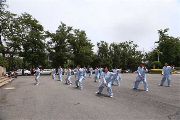 6月14日中午,第二届教职工“端午节”太极拳表演赛在山上礼堂前广场举行,90余名老师参与本次表演赛。