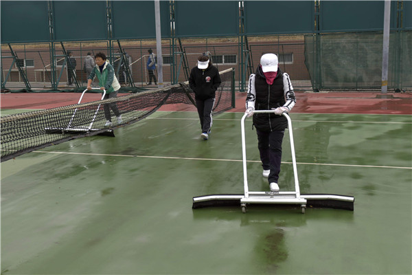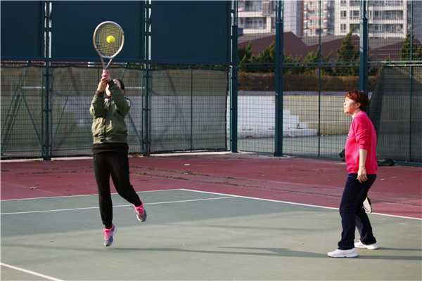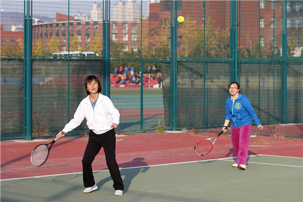 10月22日夜里的一场雨,把温度降到了10度以下,8度左右。这个温度还可以,要命的是大风,6-7级、瞬间8、9级的风力是有了,这是大连今年进入十月以来最恶劣的天气了。教授杯女双的比赛就在这样的天气中开始了,面对恶劣的天气,大家仍然一致决定每盘打到6局,恶劣的天气决不会破坏她们快乐的节奏和热情。