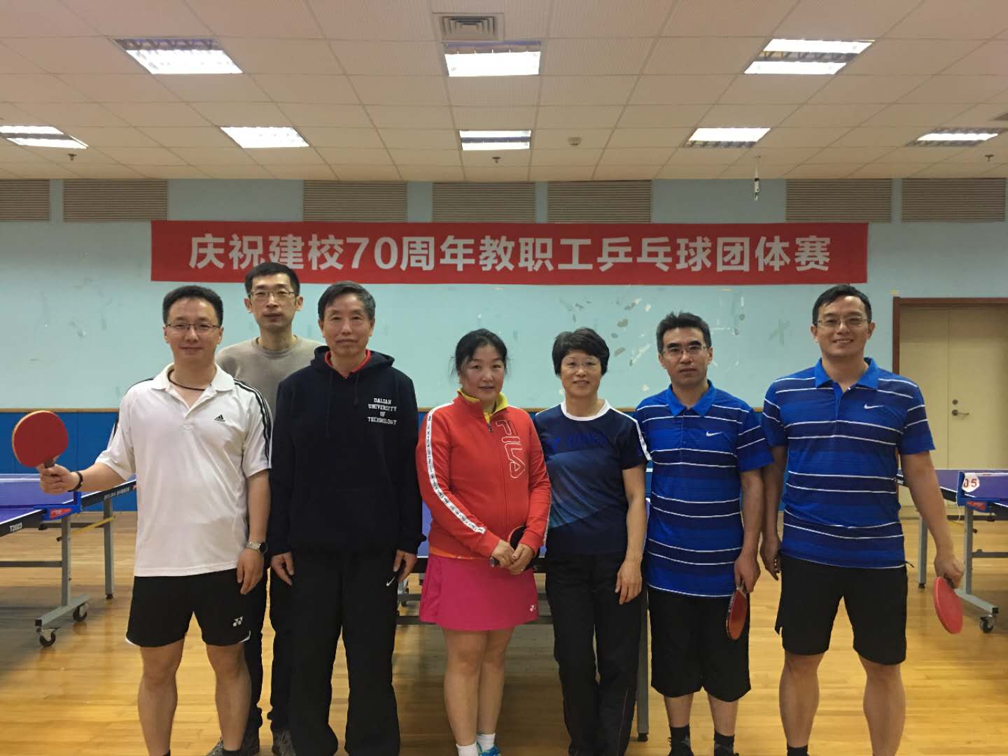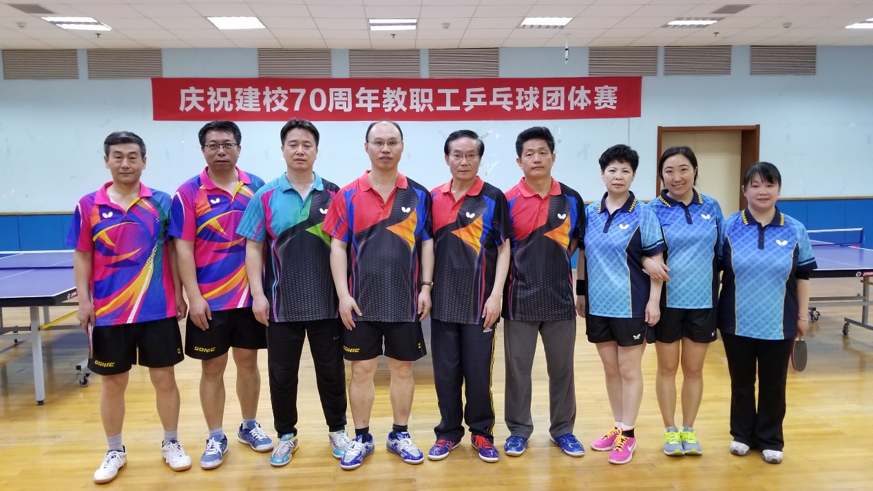 2019年4月19日上午,由校工会主办、校教工乒协承办的庆祝建校70周年教职工乒乓球团体赛在刘长春体育馆举行,共有11支代表队报名参赛,最终经过激烈角逐,电子信息与电气工程学部获得冠军。