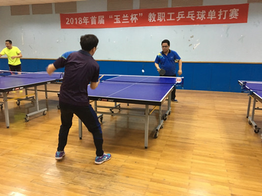为纪念4月15日大工校庆日,进一步活跃教职工文体生活,增进教职工之间的友谊,丰富学校健康工程内容,由校工会主办、教工乒乓球协会承办的2018年首届“玉兰杯”教职工乒乓球单打赛于4月13日周五中午在校乒乓球馆圆满落幕。
