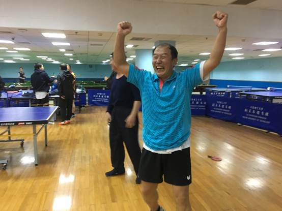 乒协会长胜利后的喜悦之一