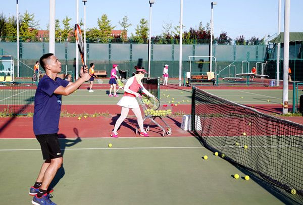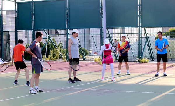 暑假训练延续了俱乐部训练的模式:教练负责陪练员的训练;陪练员在教练的指导下负责新人的入门培训;老会员的训练内容由教练安排并指导完成。每次训练前,教练负责把会员分成不同的组,计划好各个组的训练内容,4片球场,几十名会员,井井有条、热闹非凡。每周安排3次常规的训练,配合一次比赛的检验,一个假期结束,面向全体会员的集训是18次,其中有4次组织老会员比赛。另外还组织了2场加训,以表彰比赛成绩好和出勤率高的会员。