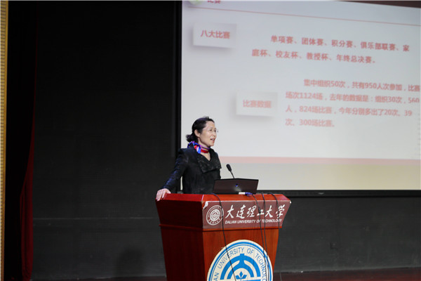 2017年12月23日下午,大连理工大学教工网球协会2017年年会在位于校西部校区综合教学2号楼百川报告厅召开。网球协会会长、副会长、秘书长、会员老师及20多名特邀的嘉宾代表,总计近160人参加了本次年会。大连市网球协会主席于滋女士到会并讲话。