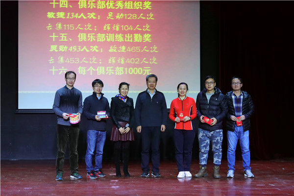 网球协会副会长兼秘书长郑玲作了2017年度大连理工大学教工网球协会工作总结。总结分训练、比赛、冬训、文化四个部分,秘书长如数家珍般娓娓道来,带领会员们重温了共同经历的一个个精彩瞬间。100多次的集中训练,2000多人次的共同参与,教练—陪练—会员的训练模式,新人随到随学的个性化教学,不同层级老会员随时随地都可以得到教练指导等等,这是很难在普通俱乐部看到的。一年8大比赛,加上应景的比赛,如教师节、国庆节、重阳节等的比赛,共集中组织50次,960人次参与,1124场的比赛,这是很惊人的数据。比赛的方式也在不断地尝试变化,如强强对话、避开田忌赛马,淡化性别、男女同场竞技等,这么做的目的只有一个,就是让比赛更激烈好看,会员锻炼最大化!为了让会员们在不能打网球的冬天保持体能,协会想尽办法,利用有限的室内空间组织大家训练乒乓球和羽毛球,这种贴心也是没有几个团队能与之抗衡的吧!协会浓浓的文化氛围更是让人大开眼界,谁能想到一个普普通通的运动团体能有如此让人感动的文化氛围,已经出版到60期的《大工网球》电子版期刊,图文并茂、技术含量很高,是全国高校独一份!“把爱传递下去”这一网协的魂是网协开展活动的原动力!网协版的“五讲四美三热爱”让大工网球越来越高雅、让大工网球人越来越绅士优美。爱充满协会的每一个角落,会员之间亲人般的爱不仅感动着身在其中的会员们,也感动着听闻的朋友们!这样一个团队值得骄傲和自豪!