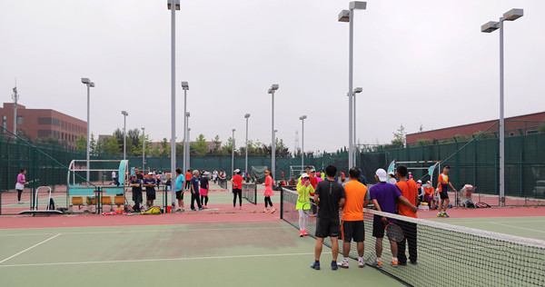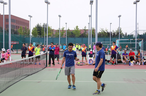 6月23日,多云、微风、28度以下,一改前两天阳光充足、高温、且闷热的天气,非常适宜网球运动。近百名参赛选手陆续来到西校区网球场。简短的开幕式上网协秘书长郑玲老师介绍了比赛的规则和注意事项,工会主席冯振业教授宣布比赛开始。
