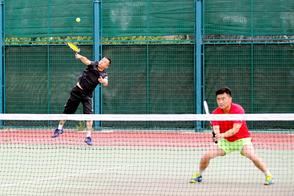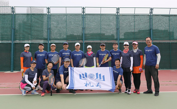 比赛开始,秘书长总协调,宋彬和刘艳分别负责A组和B组的计分及比赛场次的安排,各个团队的领队积极组织好自己的队员候场,摄影师穿梭于4片场地之间,比赛有条不紊地紧张进行着。正值招生宣传季,不少老师为了比赛要么归期提前、要么行期延后,尽管如此但还是有个别团队出现了“队员慌”。秘书长现场紧急调配人员,“杀富济贫”,把富裕的选手“救济”到缺人的团队。这个问题赛前就想到了,因为事业、家庭多重重担的老师们,能在一个时间段凑齐非常难,所以领队会上对人员调配大家达成了一致。这样做既保证了缺人团队的顺利参赛,同时也能使所有到场的队员都能打上比赛,这也是大工网球的一个特色!比赛的目的不只有成绩一个指标,锻炼队员、整体提高、享受网球带来的快乐始终是最重要的目标。